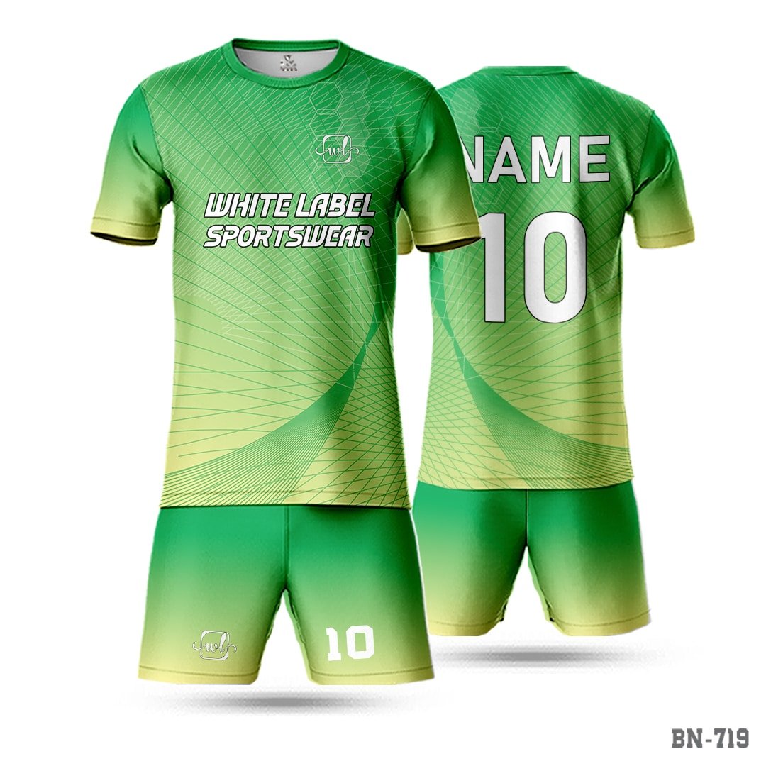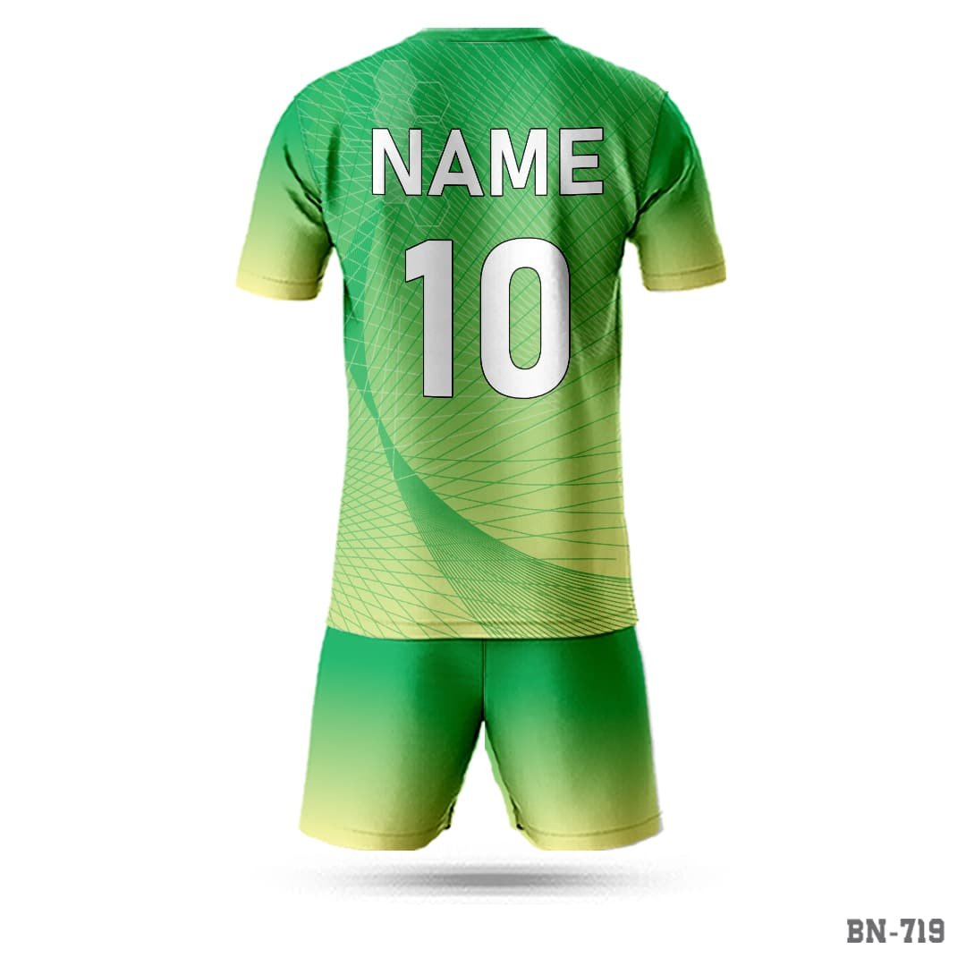 The yellow green Football kit custom-made solution offers an ideal fit for every player. The fabric is soft and durable, made to endure extended playing hours without color or shape loss. Its sporty fit allows for complete movement on the ground, so you can bowl, bat, and field with ease. Ideal for cricket clubs, school teams, and corporate tournaments, these jerseys can be bulk or small team orders customized without any compromise on quality.